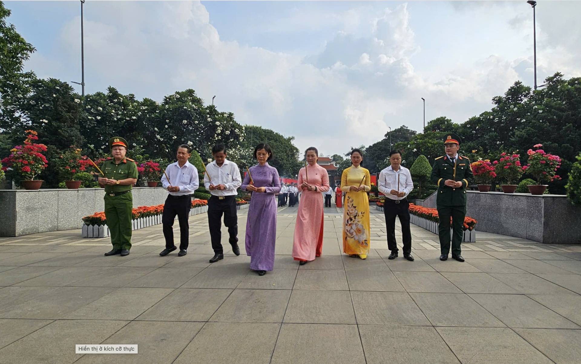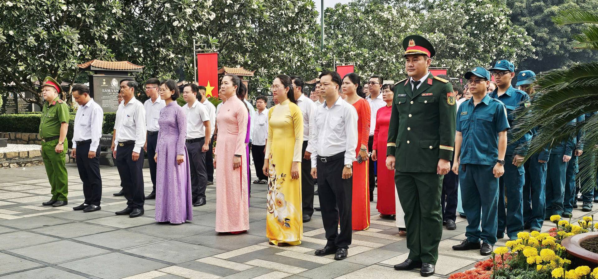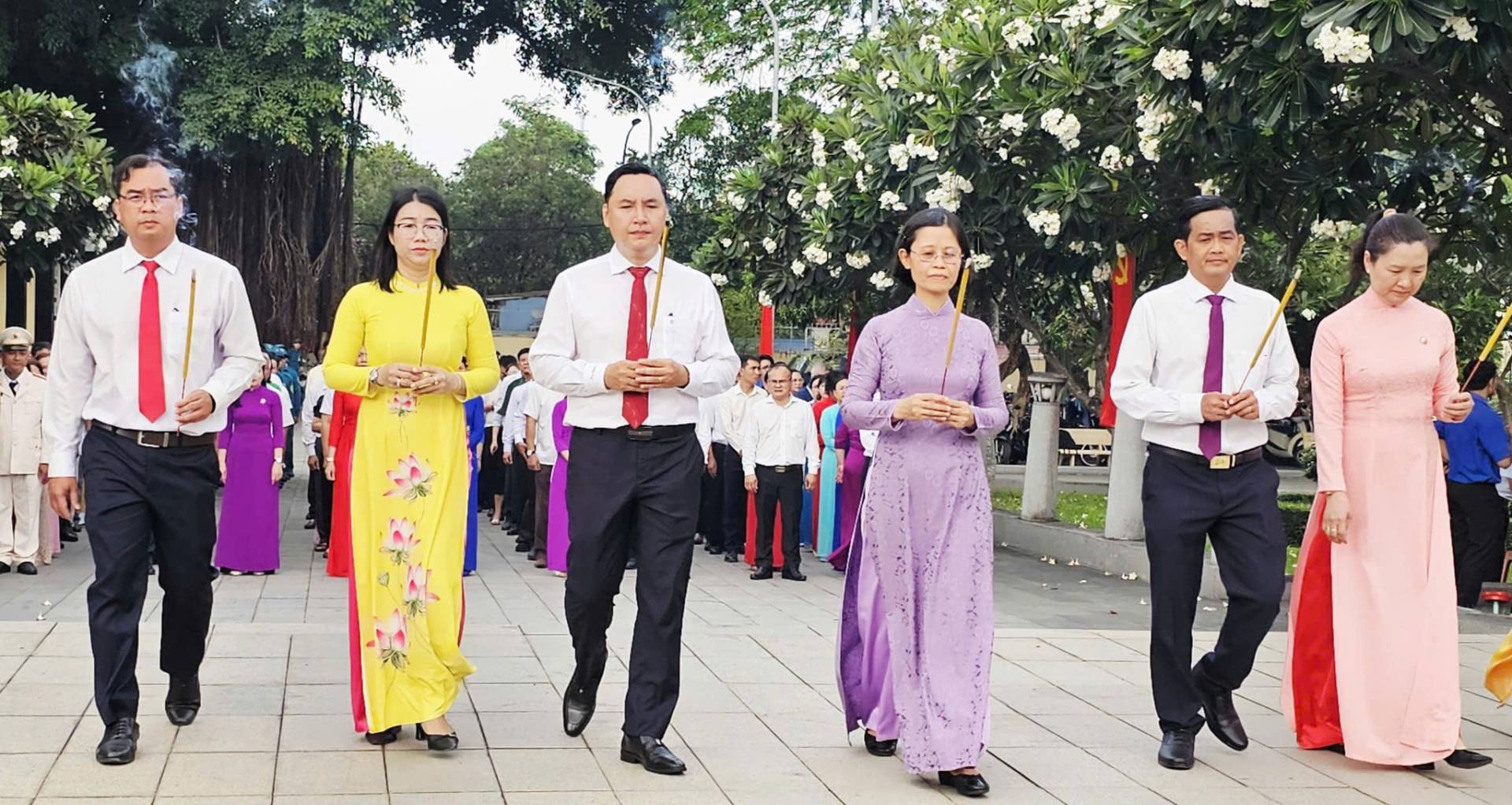 Trong không khí trang nghiêm, các đại biểu đã thực hiện nghi thức dâng hoa, dâng hương trước Đài tưởng niệm, bày tỏ lòng biết ơn sâu sắc đối với Chủ tịch Hồ Chí Minh kính yêu – vị lãnh tụ thiên tài của dân tộc, cùng các anh hùng liệt sĩ, đồng chí, đồng bào đã hy sinh trọn đời vì sự nghiệp giải phóng dân tộc, vì hạnh phúc của Nhân dân.