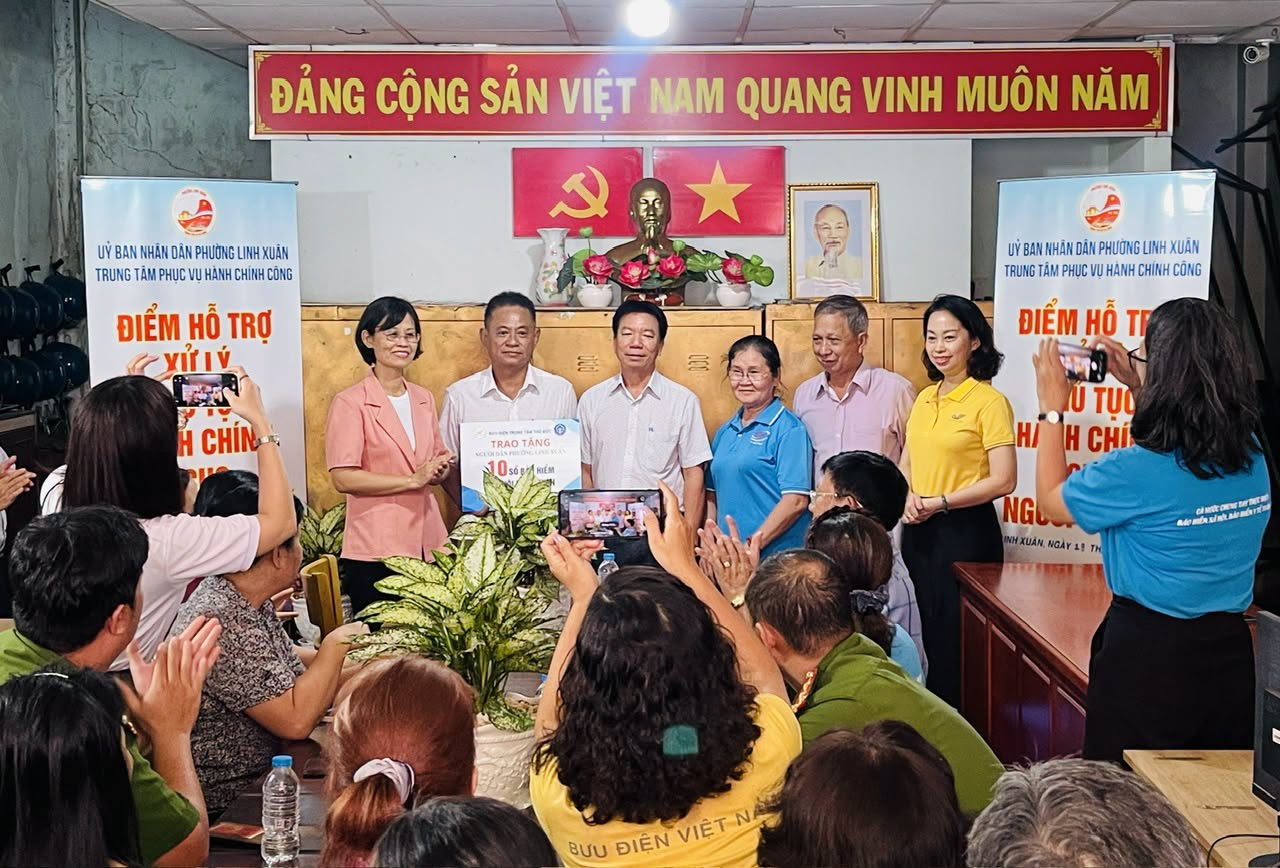 Dịp này, đại diện Trưởng khu phố 2, 3, 4 và 7 đã tiếp nhận biểu trưng trao tặng 10 suất sổ BHXH do Bưu điện Thành phố Thủ Đức hỗ trợ, góp phần chăm lo an sinh, tạo điều kiện để người dân có hoàn cảnh khó khăn từng bước tiếp cận chính sách bảo hiểm xã hội, bảo đảm quyền lợi lâu dài.