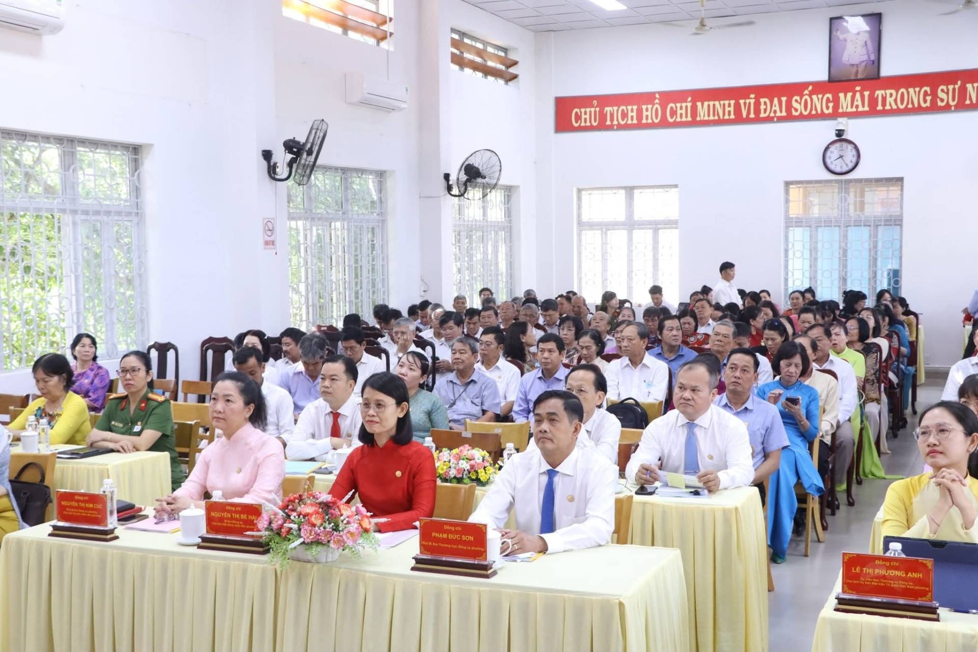 Đến dự có các đồng chí: Nguyễn Thị Bé Hai - Bí thư Đảng ủy, Chủ tịch HĐND phường; Phạm Đức Sơn - Phó Bí thư Thường trực Đảng ủy phường; Nguyễn Thị Kim Cúc - Phó Bí thư Đảng ủy, Chủ tịch UBND phường; Trương Hồng Yến, UVBTV, Chủ nhiệm Ủy ban Kiểm tra Đảng ủy phường; Trần Thị Cẩm Vân, UVBTV, Trưởng Ban Xây dựng Đảng Đảng ủy phường; Lê Thị Phương Anh, UVBTV, Chủ tịch UBMTTQ Việt Nam phường...