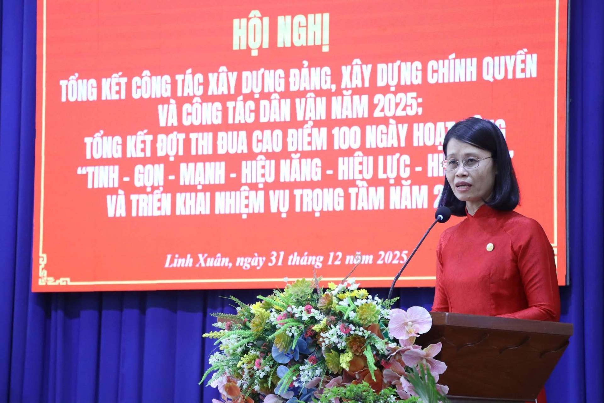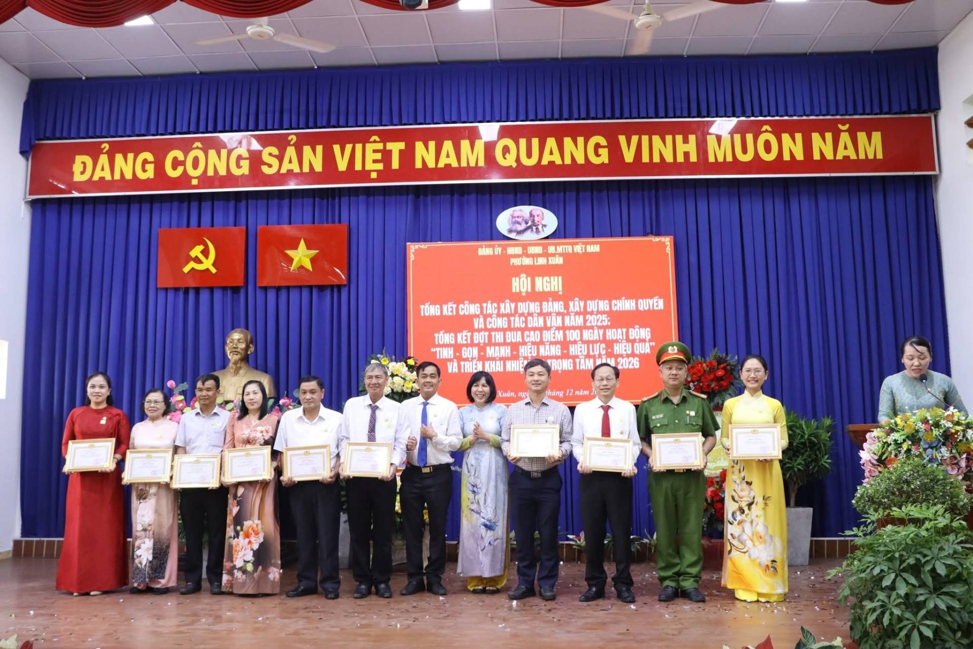 Thay mặt Ban Thường vụ Đảng ủy, đồng chí Nguyễn Thị Bé Hai - Bí thư Đảng ủy, Chủ tịch HĐND phường gửi lời chúc mừng các tập thể, cá nhân được khen thưởng trong hội nghị hôm nay, cũng như việc ra mắt biểu trưng phường Linh Xuân và mong rằng trong thời gian tới, Đảng bộ chúng ta sẽ có thêm nhiều tập thể, cá nhân đạt nhiều thành tích xuất sắc trong thực hiện nhiệm vụ góp phần thực hiện thắng lợi nghị quyết Đảng bộ năm 2026 và những năm tiếp theo.