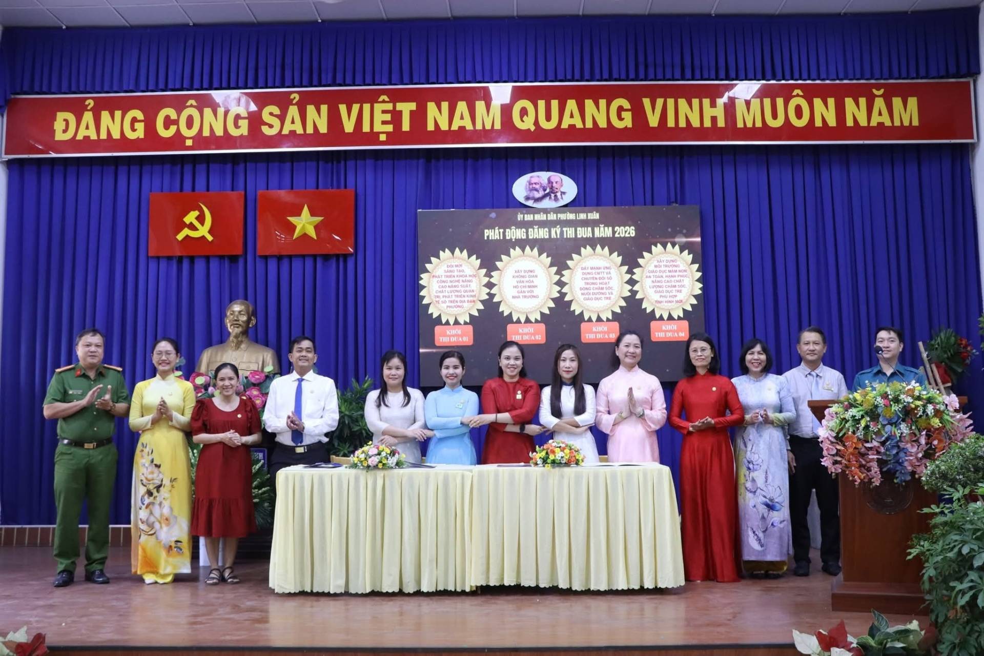 Đồng chí Nguyễn Thị Kim Cúc - Phó Bí thư Đảng ủy, Chủ tịch UBND phường kêu gọi các tổ chức chính trị xã hội, các khu phố cùng toàn thể cán bộ, công chức, đảng viên, đoàn viên, hội viên và Nhân dân trên địa bàn phường tích cực hưởng ứng phong trào thi đua yêu nước, biến tinh thần thi đua thành hành động, mỗi cá nhân là một nhân tố tích cực, mỗi tập thể là điển hình tiên tiến, quyết tâm thực hiện thắng lợi nhiệm vụ phát triển kinh tế xã hội năm 2026 và phong trào thi đua yêu nước giai đoạn 2026 – 2030, góp phần xây dựng phường Linh Xuân ngày càng văn minh, giàu đẹp và nghĩa tình