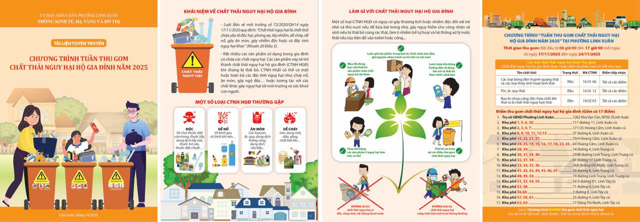 Ngày 04/12 Ủy ban nhân dân phường Linh Xuân tổ chức triển khai chương trình “Tuần lễ thu gom chất thải nguy hại gia đình năm 2025” Tham dự Hội nghị có ông Nguyễn Đoàn Thế Hùng – Phó Chủ tịch UBND phường cùng Ban ngành đoàn thể, 63 khu phố trên địa bàn phường cùng tham dự.