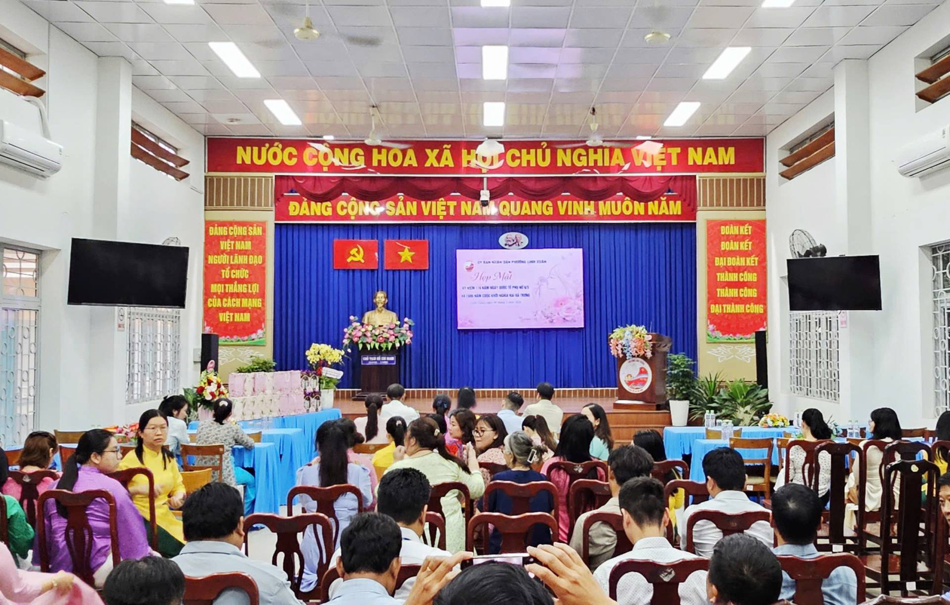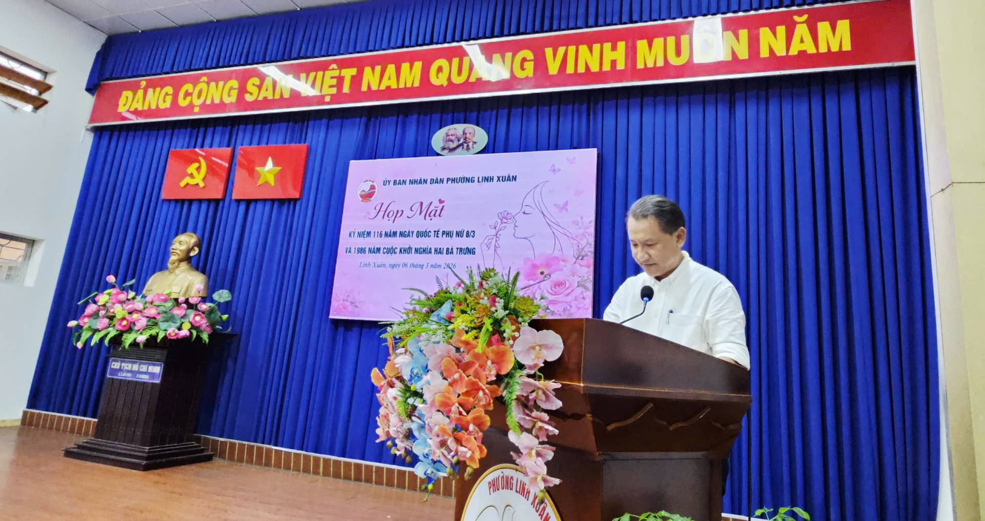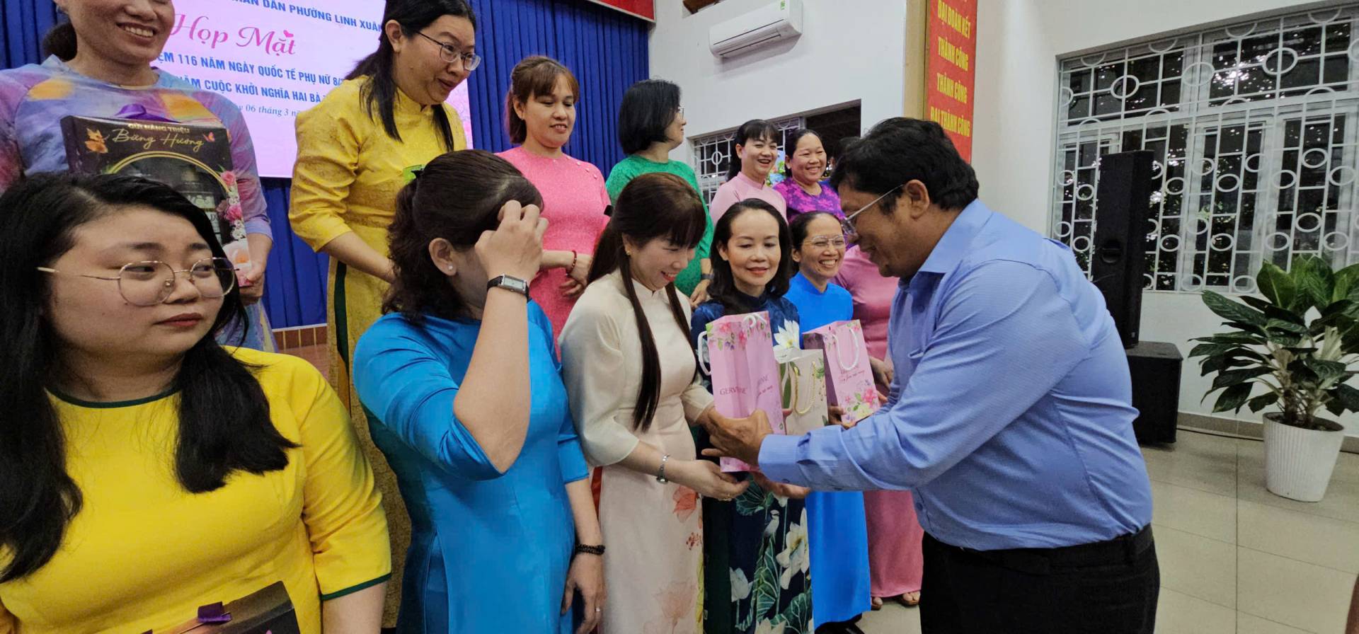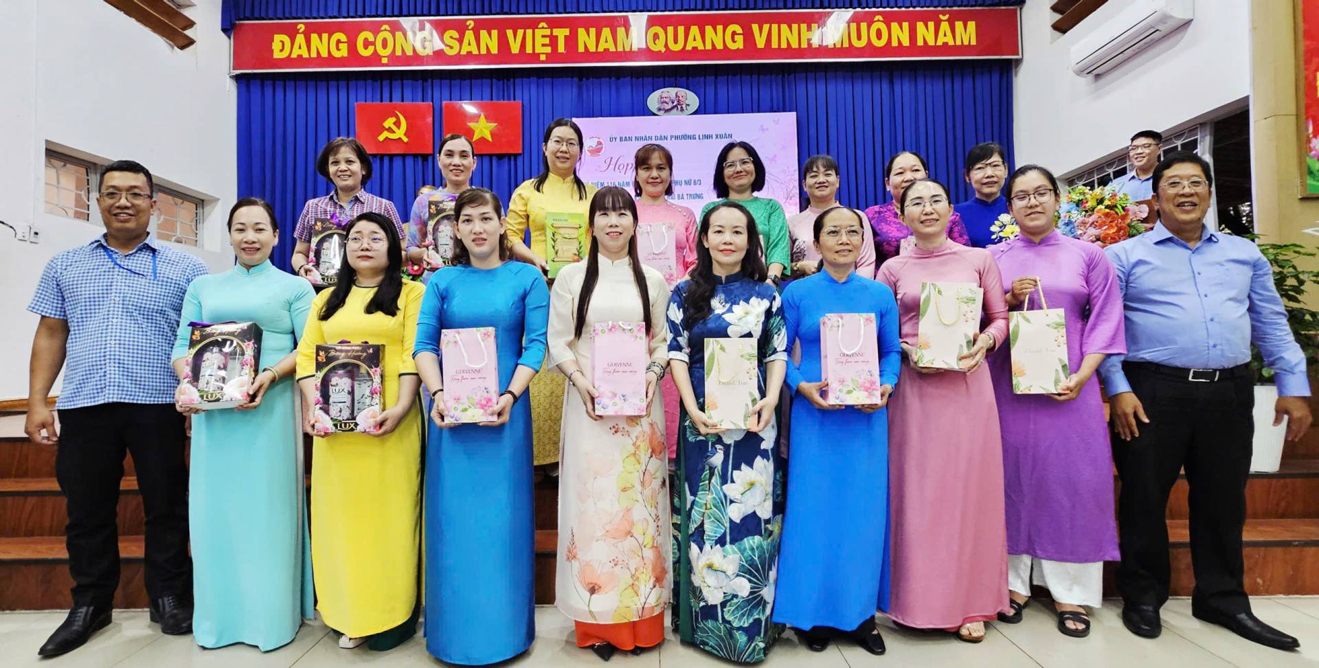 Nhân dịp này, lãnh đạo phường Linh Xuân đã trao những phần quà ý nghĩa nhằm động viên tinh thần và thể hiện sự quan tâm đối với các cô, các chị em phụ nữ đang công tác tại phường.