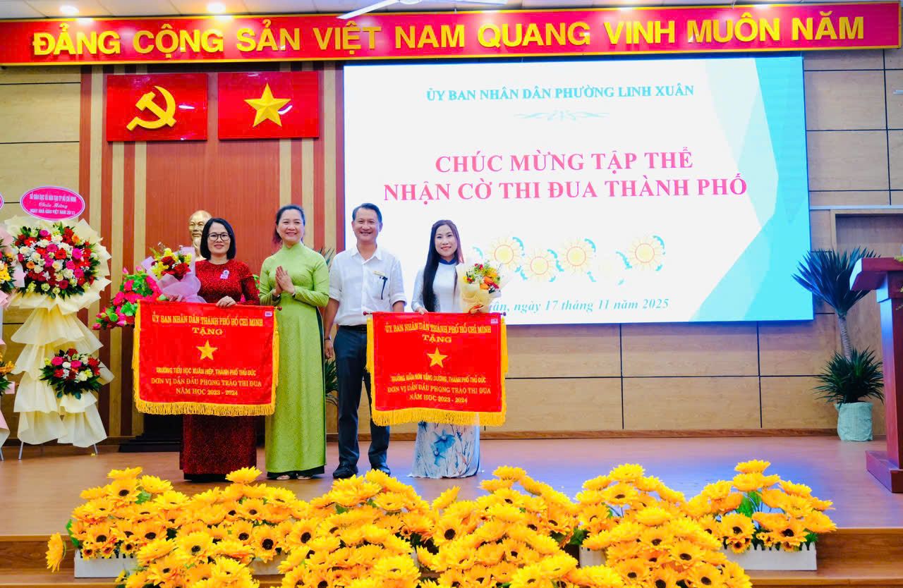 - Tại buổi họp mặt, phường Linh Xuân đã tri ân các thầy cô nghỉ hưu và trao tặng nhiều danh hiệu thi đua cho các cá nhân và tập thể : Bằng khen Thủ tướng Chính phủ cho 5 cá nhân; Cờ Thi đua Thành phố cho MN Vầng Dương và TH Xuân Hiệp; Bằng khen UBND TP.HCM cho 4 tập thể; Chiến sĩ thi đua cấp Thành phố; cùng Giải thưởng Võ Trường Toản 2025.