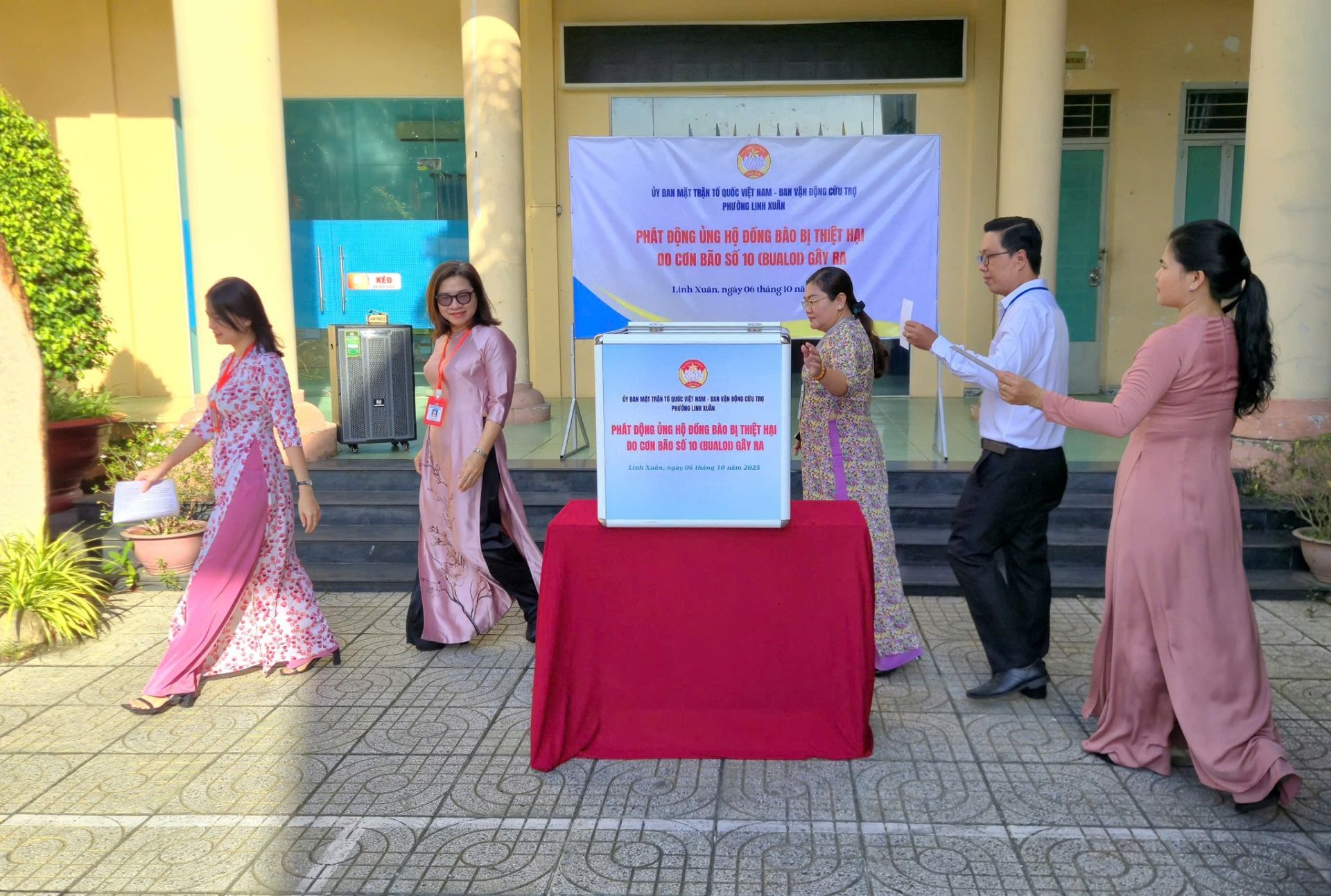 Sáng ngày 06 tháng 10 năm 2025, Ủy ban Mặt trận Tổ quốc Việt Nam - Ban vận động Cứu trợ Phường Linh Xuân đã tổ chức lễ phát động ủng hộ đồng bào bị thiệt hại do cơn bão số 10 (Bualoi). Tham dự có Đồng chí Nguyễn Thị Bé Hai - Bí thư Đảng ủy, Chủ tịch Hội đồng nhân dân phường; Đồng chí Phạm Đức Sơn - Phó Bí thư Thường trực Đảng ủy phường; Các đồng chí Ủy viên Ban Thường vụ Đảng ủy, Ủy viên Ban Chấp hành Đảng bộ phường. Cùng toàn thể cán bộ, công chức, người lao động đang công tác tại các cơ quan thuộc Đảng ủy, Ủy ban Mặt trận Tổ quốc Việt Nam phường.