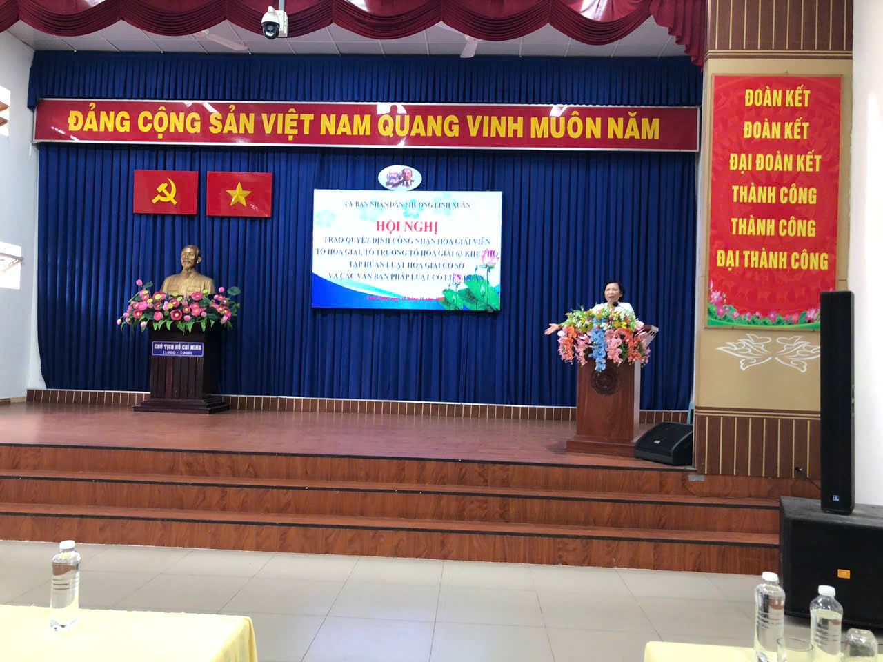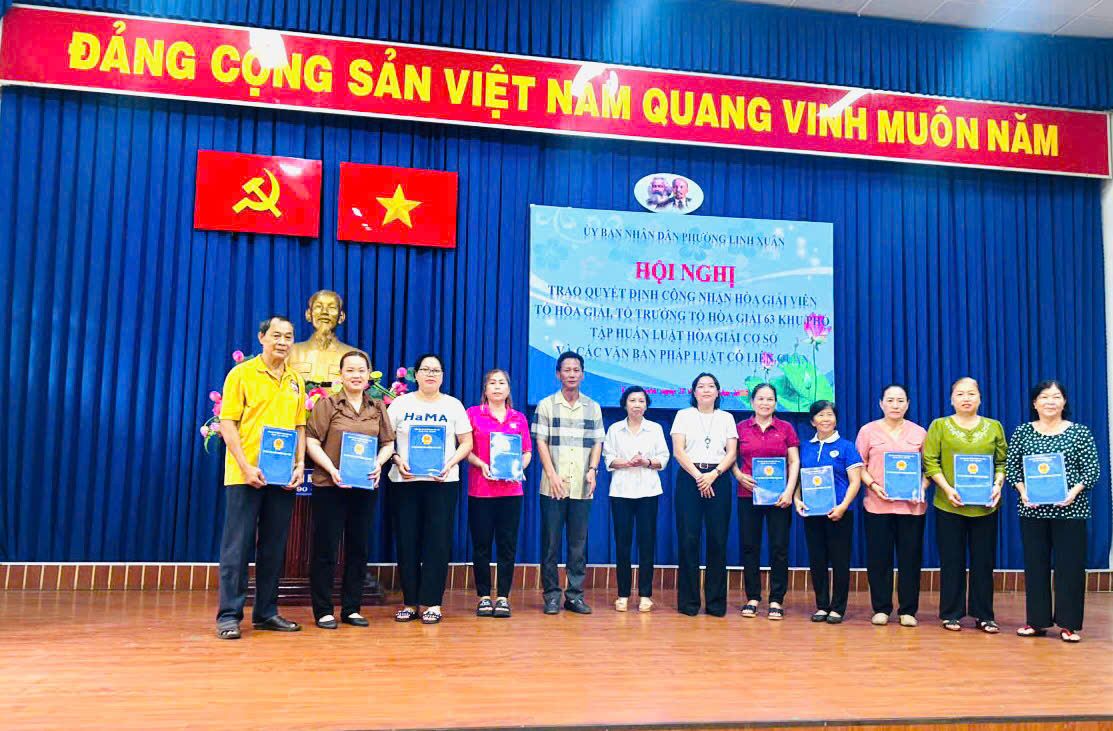 Sáng ngày 28 tháng 10 năm 2025, Ủy ban nhân dân phường Linh Xuân tổ chức hội nghị trao quyết định công nhận hòa giải viên và tổ trưởng tổ hòa giải trên địa bàn phường Linh Xuân. Tham dự hội nghị có bà Võ Thị Kéo, Uỷ viên Ban chấp hành Hội Luật gia thành phố Hồ Chí Minh; bà Nguyễn Thị Kim Cúc - Phó Bí thư Đảng ủy, Chủ tịch Ủy ban nhân dân phường; bà Lê Thị Phương Anh, Ủy viên Ban Thường vụ Đảng ủy, Chủ tịch Ủy ban Mặt trận tổ quốc Việt Nam phường; ông Nguyễn Văn Hải, Ủy viên Ban Chấp hành Đảng bộ phường, Chánh Văn phòng Ủy ban nhân dân phường Linh Xuân; cùng các ông (bà) là Hoà giải viên, Trưởng 63 khu phố, phường Linh Xuân.