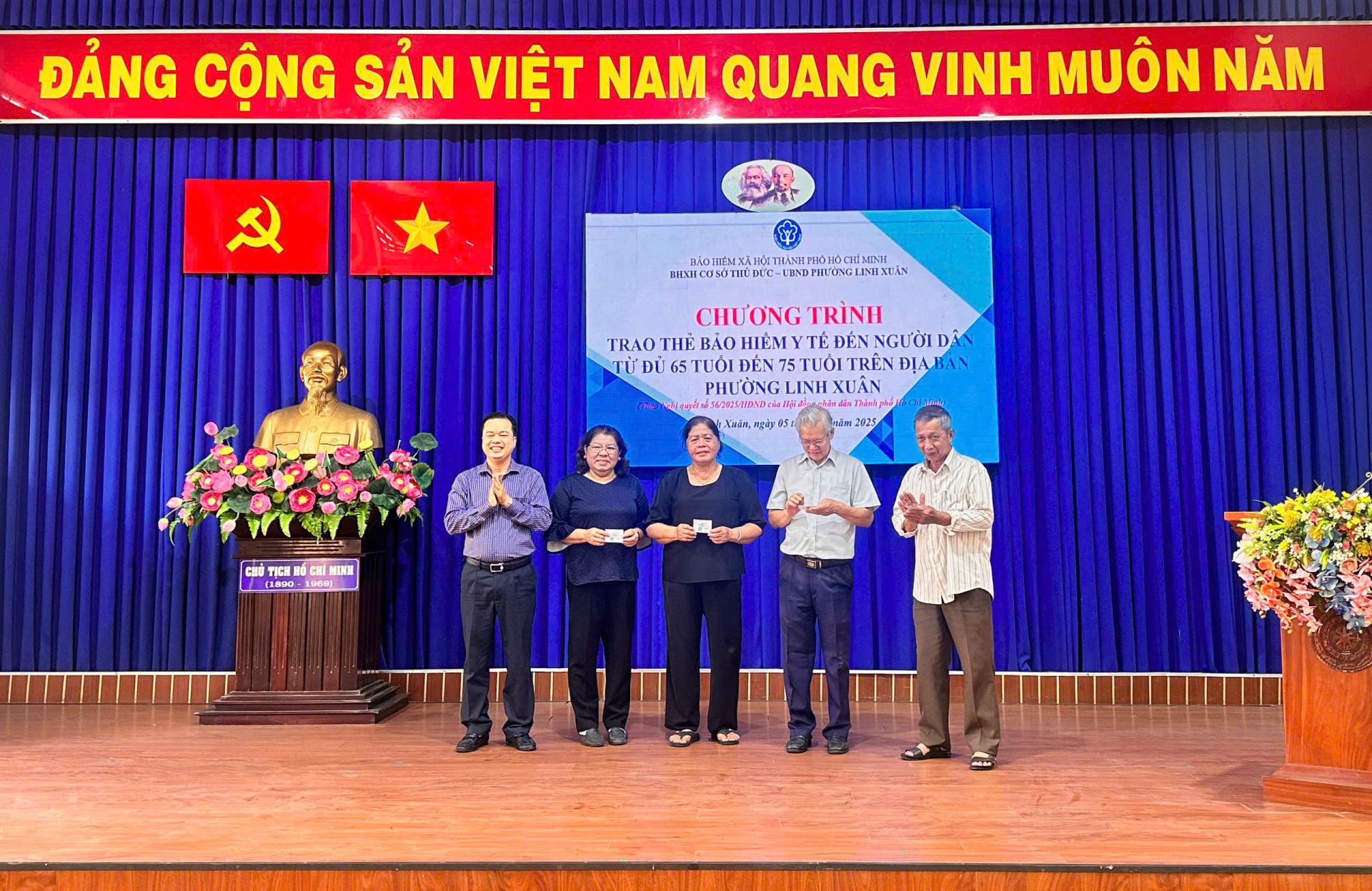 TRAO THẺ BẢO HIỂM Y TẾ ĐẾN NGƯỜI DÂN TỪ ĐỦ 65 TUỔI ĐẾN 75 TUỔI TRÊN ĐỊA BÀN PHƯỜNG LINH XUÂN