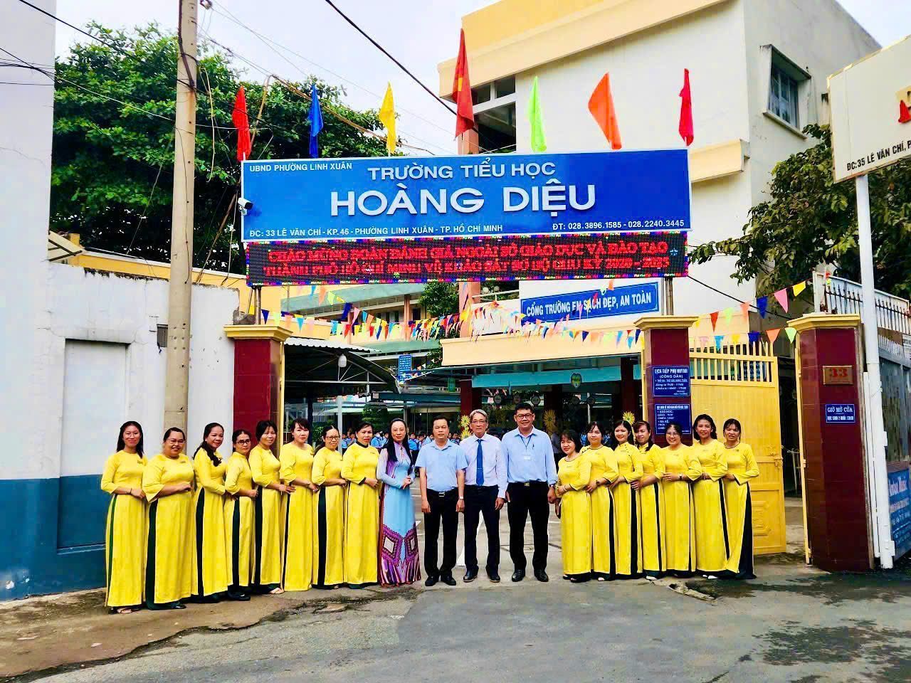 Tại trường tiểu học Hoàng Diệu vinh dự đón tiếp đồng chí Lê Hữu Nghị - Phó chủ tịch phường Linh Xuân, ông Trần Thanh Phú - chuyên viên Phòng Văn hóa - Xã hội phường, ông Nguyễn Ngọc Thảo - Hiệu trưởng Trường Tiểu học Trần Quốc Thảo, phường Xuân Hòa - Trưởng đoàn, bà Nguyễn Thị Kim Thúy – Phó Hiệu trưởng Trường Tiểu học Hàn Hải Nguyên, phường Bình Thới - Thư ký đoàn, bà Phan Ngọc Thắm Hiệu trưởng cùng các thành viên hội đồng tự đánh giá trường tiểu học Hoàng Diệu.